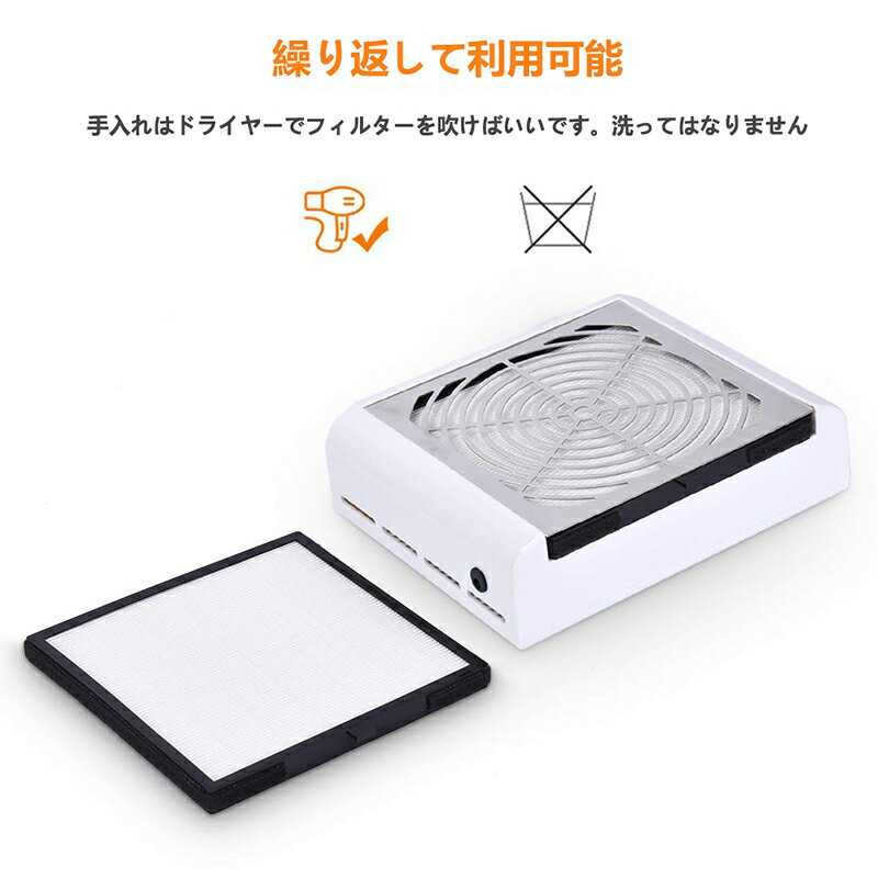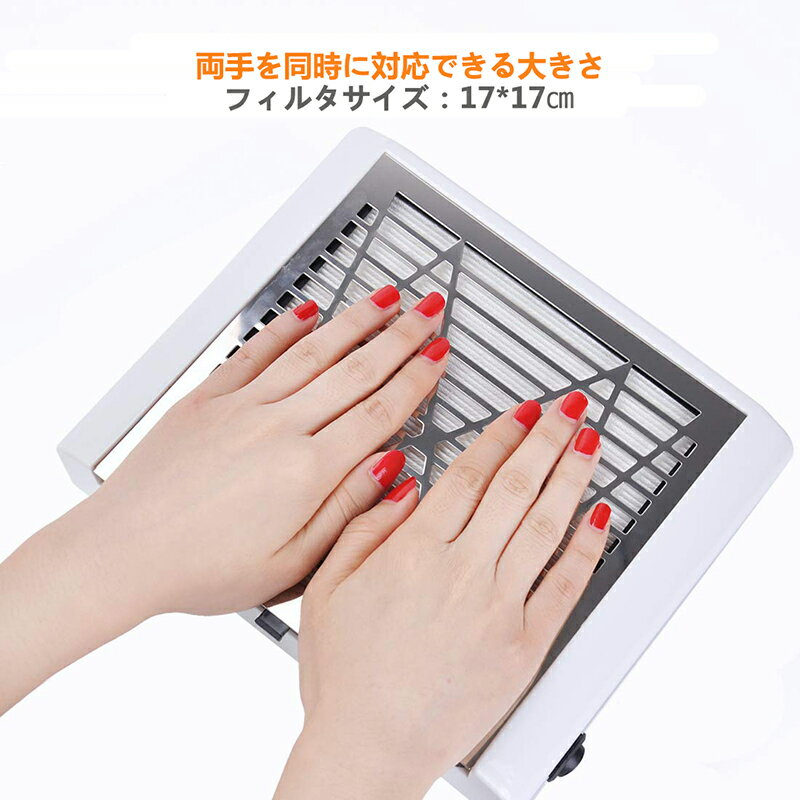 強力な吸引力強力なモーターはネイルケアの間に発生したダストを吸収して、まわりの環境を保ちます。