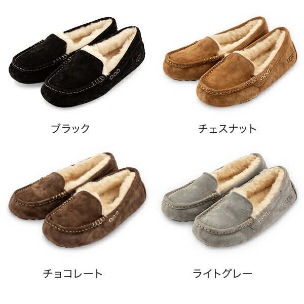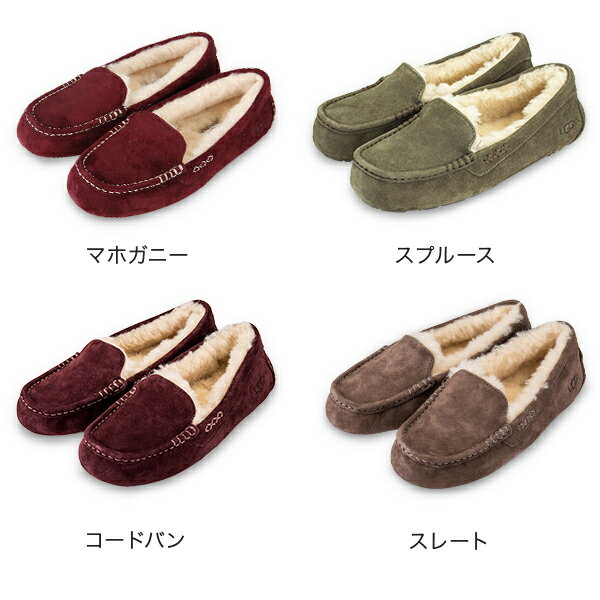商品名アグ【UGG】アンスレー Ansley モカシン レディース 3312 カラーブラック、チェスナット、チョコレート、ライトグレー、マホガニー(3312-MAH)、スプルース(3312-SPRC)、コードバン(3312-CRDV)、スレート(3312-SLA)、アイスランディックブルー(3312-ICBL)、ボデーシャス(3312-BDC)、シーグリーン(3312-SEGN) サイズUS5(22cm)、US6(23cm)、US7(24cm)US8(25cm)、US9(26cm) 素材アッパー:天然皮革(スエード)ボア:シープスキン(羊毛)ソール:ラバー 商品について【アンスレー】モカシンをイメージして作られたアンスレー。