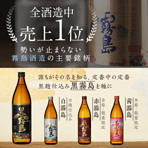 黒霧島・赤霧島・茜霧島・金霧島・黒宝霧島〔ギフト箱W〕人気のバラエティ小瓶5本セット(900ml×5)【霧島酒造】【□】