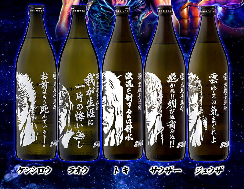 オススメ ギフト 酒 北斗の拳 焼酎 ケンシロウ ラオウ トキ サウザー ジュウザ 5本セット 900ml