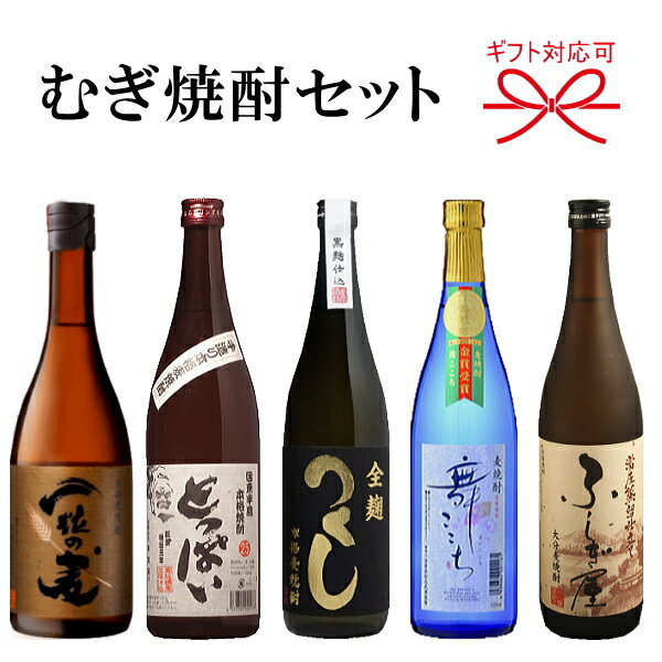 【 むぎ焼酎セット 】人気の 麦焼酎 を飲み比べ!『 むぎ焼酎セット 「やわらぎ」 720mlサイズ×5本 』 つくし全麹 舞ここち ふしぎ屋 一粒の麦 とっぱい お歳暮、父の日、誕生日プレゼント用に是非!