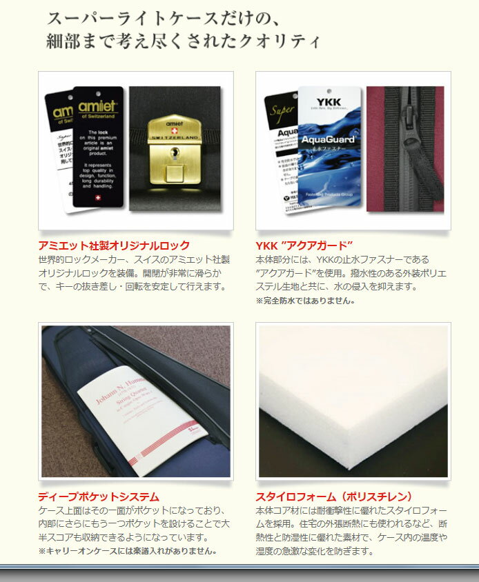 人気のケースに新色が登場です! 楽器の裏板を浮かして収納することにより、 楽器を保護する構造になっている。