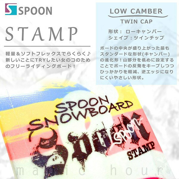 スノーボード 板 レディース 型落ち SPOON スプーン STAMP スノボー 初心者でも簡単 イージー キャンバー ボード 軽量 ソフトフレックス 大人 カワイイ