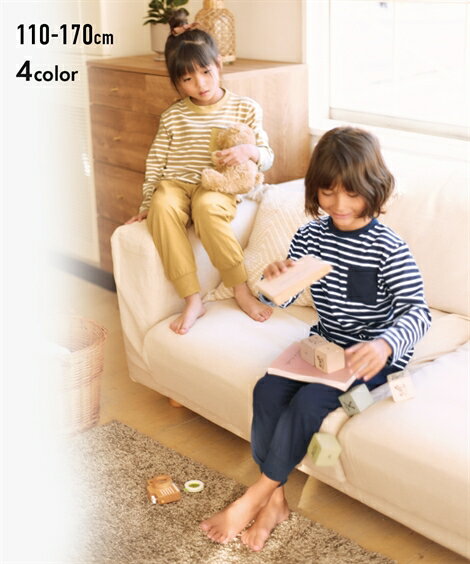 パジャマ 綿100% 天竺 長袖 男の子 女の子 子供服 ジュニア服 ピンク×杢グレー/フォレストグリーン×杢グレー/杢グレー×ブラック 身長170cm ニッセン nissen