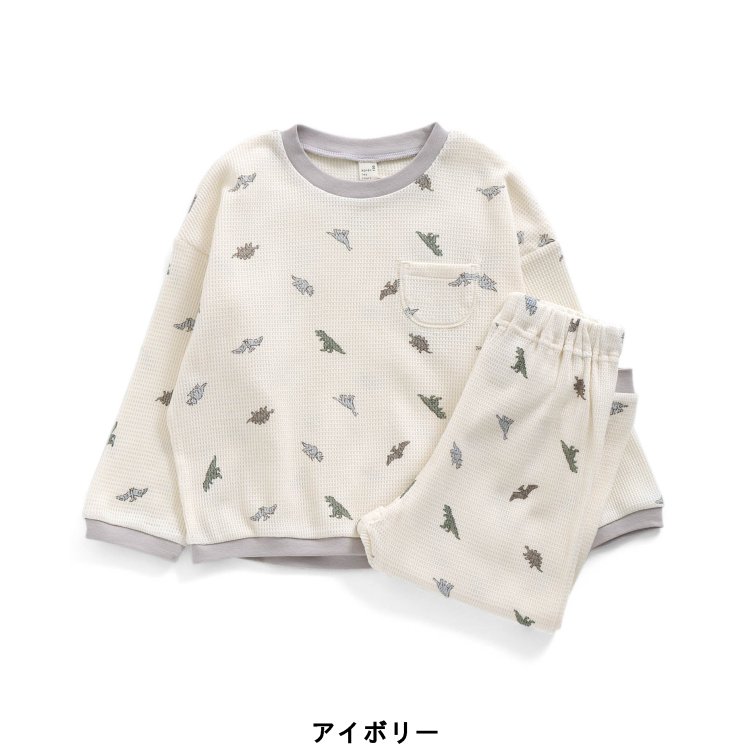 【2021春】 apres les cours(アプレレクール)のパジャマ「きょうりゅう柄パジャマ」は、カラフルなデザインで寝るのが楽しみになっちゃいそう! ≪素材≫ フワ糸ワッフル 本体:綿100%衿ぐり・袖口・裾口・足口部分:綿97% ポリウレタン3% ≪サイズ表≫ サイズ計測方法についてはこちら サイズ(cm) 【上衣】着丈身幅肩幅袖丈袖口幅【下衣】ウエスト幅前股上股下(10分丈)足口幅腰幅 803636362172021207.531.59038373723.57212223832.5100413939277.5222429934.511043404031.57.52325349.535.512046424235.57.52426.539.510.53713049444439.5825284511.538.5 ※商品により多少の誤差が生じる事がございます。